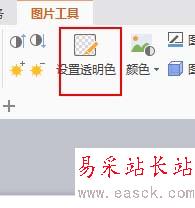 5、同樣在“圖片工具”中,找到“設置透明色”鼠標左鍵單擊一下。