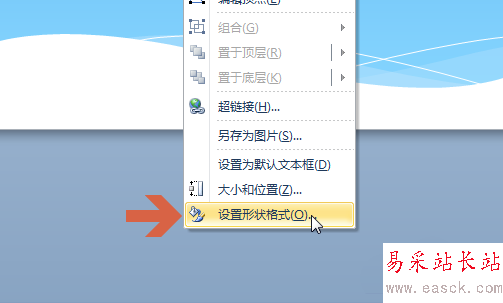2、再用鼠標左鍵點擊彈出菜單中的“設置形狀格式”。