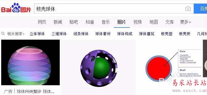 1、首先我們需要去照幾張核殼球體的照片備用,如圖所示,直接在百度圖片里搜核殼球體:找打以后把它下載下來備用