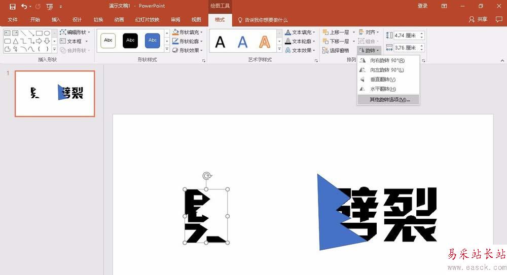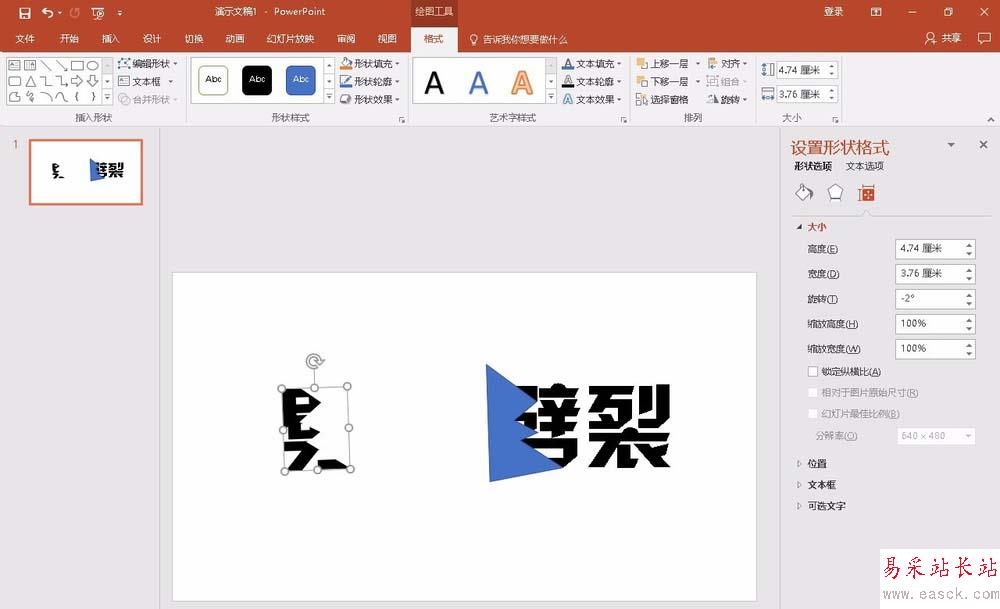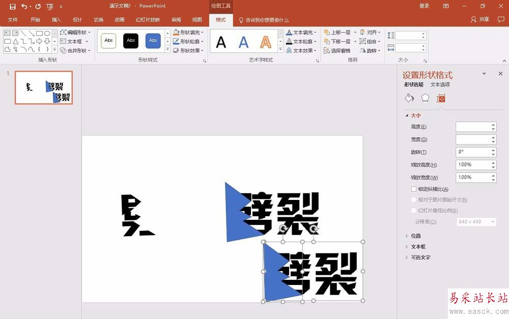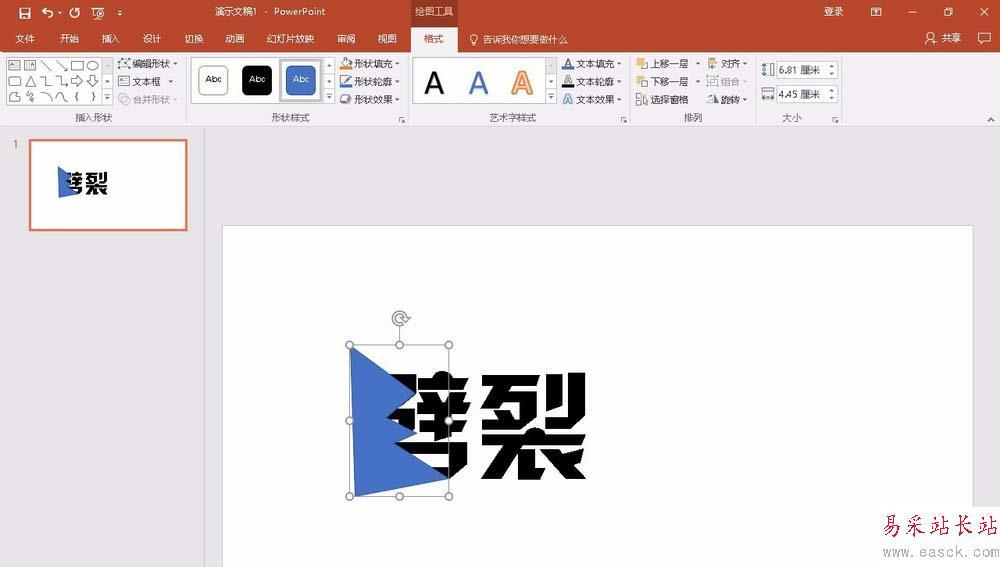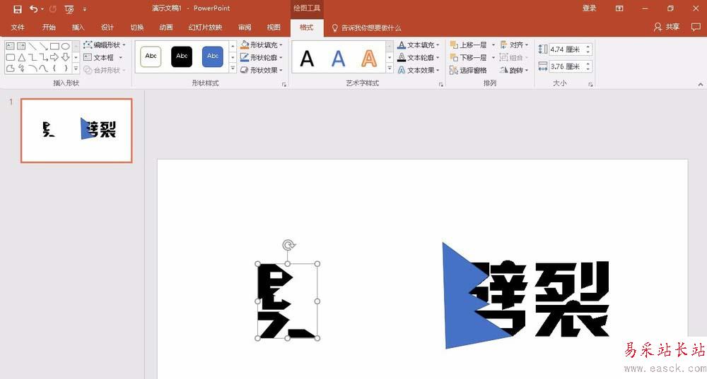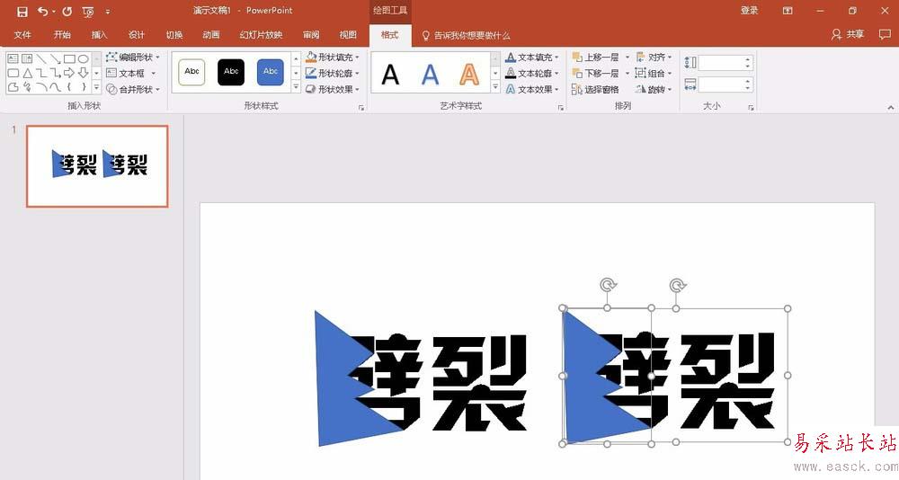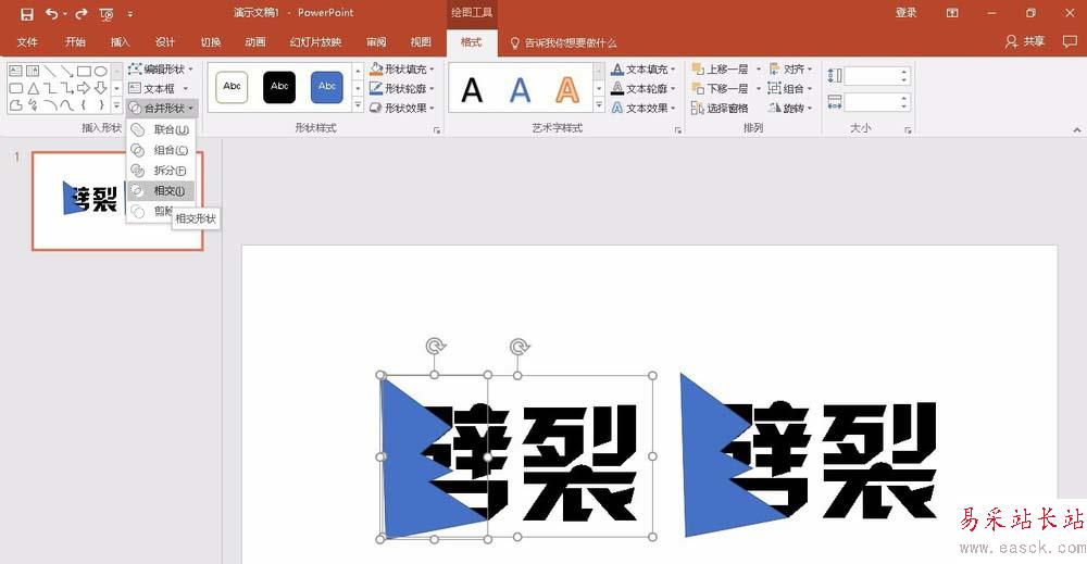 PPT里有些形狀的應(yīng)用可以和PS里一樣地靈活方便。比如相交,比如剪除。這些PS里有的路徑效果,在PPT里同樣也有。這里我將介紹PPT里制作劈裂文字效果的方法。