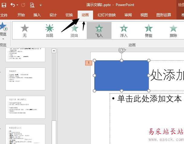 6、現(xiàn)在圖形2也有飛入動畫了,一樣一樣的。