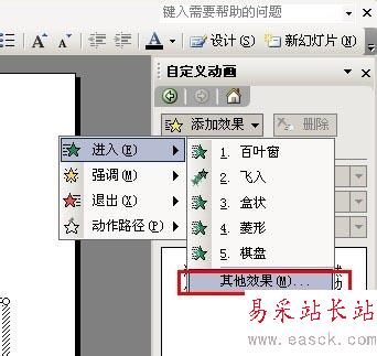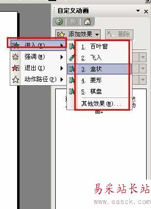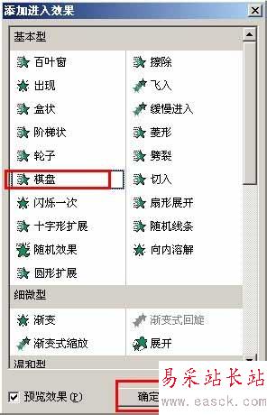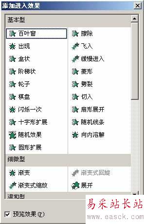 7、在【添加進入效果】對話框中提供了不同類型的【進入】效果,
