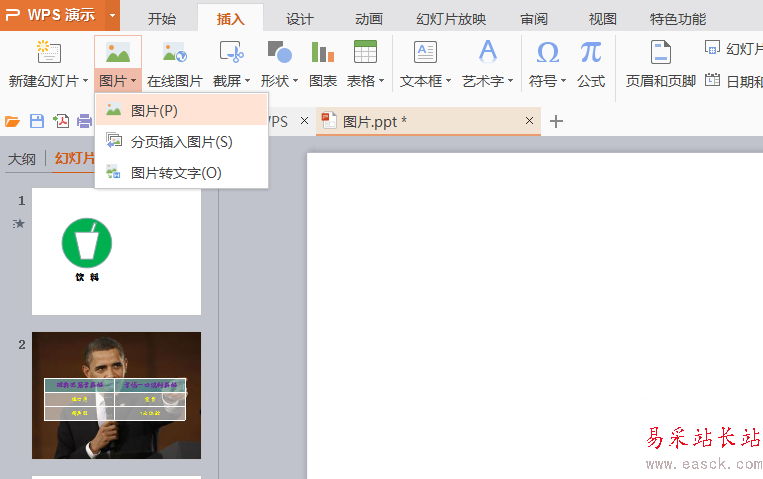 1、首先,新建空白幻燈片之后,選擇“插入”-“圖片”選項。
