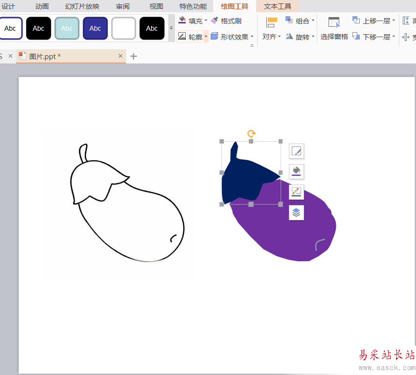 PPT怎么繪制一個紫色的茄子圖形?