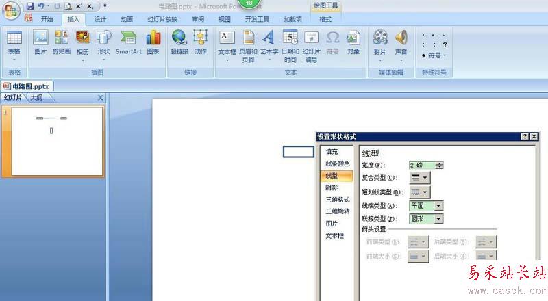 7、同樣,設(shè)置直線的形狀格式,線型中的寬度同樣改為2磅。寬度可以自由調(diào)整,線條粗細(xì)統(tǒng)一即可。