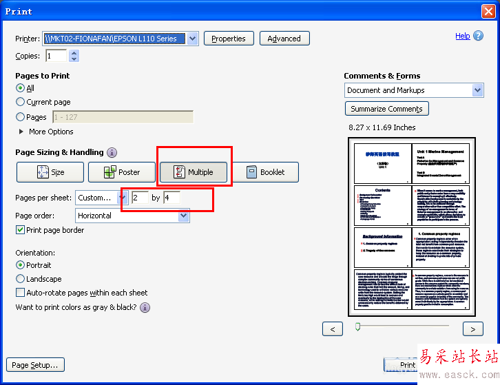 5、選擇【打印】,參數如圖設置,選擇打印即可