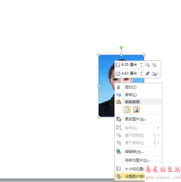 2、接著選擇圖片,右鍵單擊從下拉菜單中選擇設(shè)置圖片格式選項,彈出設(shè)置圖片格式對話框。