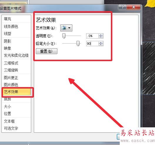 5、在“藝術效果”-“藝術效果選項中”降低“透明度”,加大“鉛筆大小”的值。