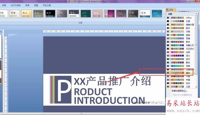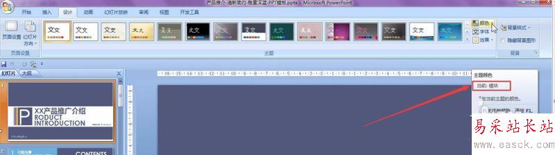 1、如果是主題顏色中的一種的話,我們可以直接修改成和原來模板一樣的主題就可以了。