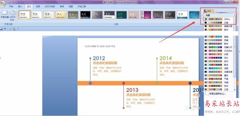 4、發生這種情況的原因是兩個模板的主題顏色不一致。打開菜單上的設計,如下圖所示。