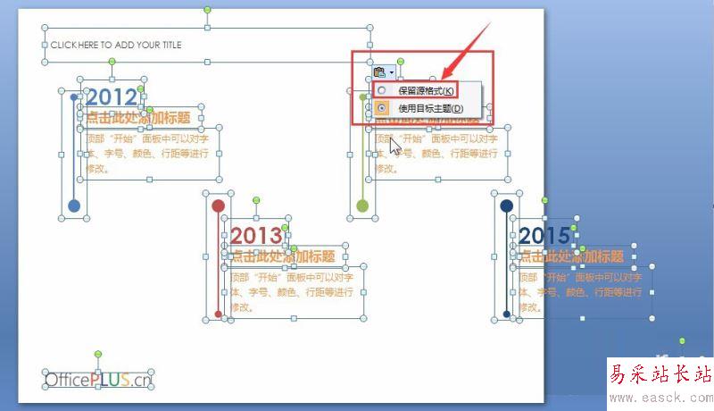 2、但這時如果是自定義主題的話上述方法就無效了。這時就需要在粘貼的時候選擇“保留格式”