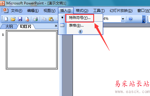 3、點擊插入選項,在其子級菜單里找到特殊符號選項,如圖所示:
