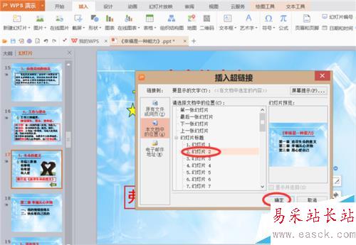 5、選擇想要返回到的幻燈片,即本文檔中的第二張幻燈片。如圖所示: