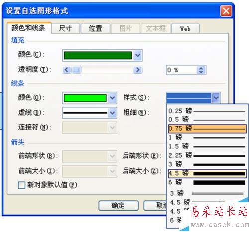 8、最后,設計線條的粗細。系統默認樣式是0.75磅,我選擇了4.5磅。