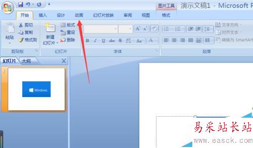 4、然后點擊該圖片,點擊工具欄上的動畫按鈕圖標