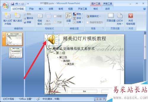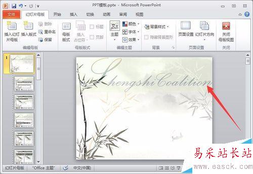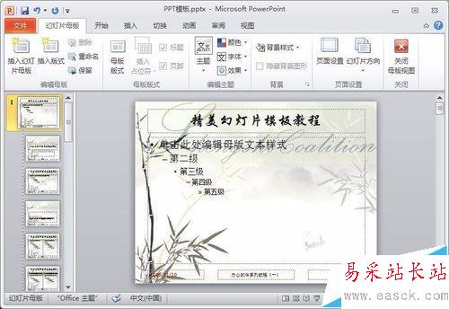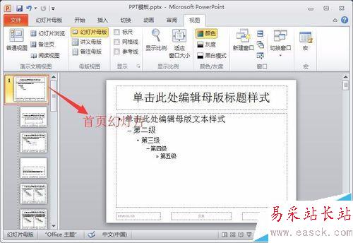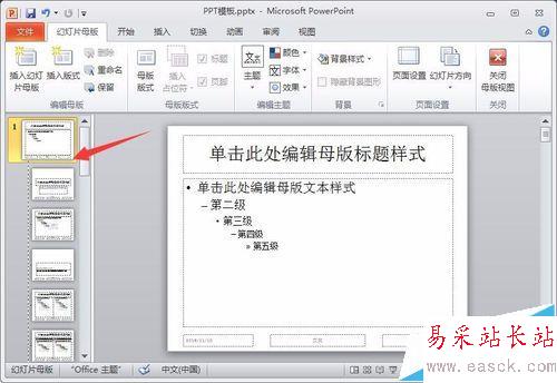 首頁模板完成之后,開始設置你內容頁模板,首頁一般作為封面,清爽大氣,圖比較大,而內容頁作為內容展示的主題部分,跟封面有所區別;點擊第二張幻燈片母版,修改內容頁模板,如圖: