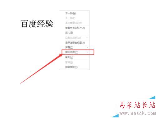 2、在需要標記的頁面上點擊鼠標右鍵,然后點擊“指針選項”。