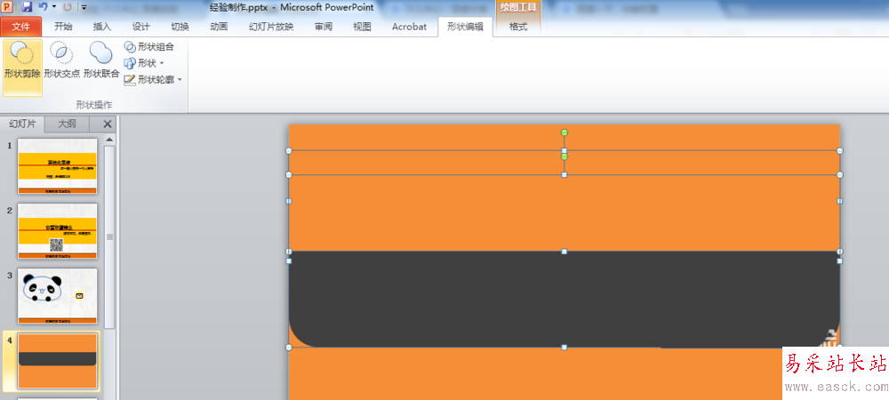 4、復(fù)制步驟一的矩形,選中圓角矩形和復(fù)制的矩形,使用形狀剪切制作封口;