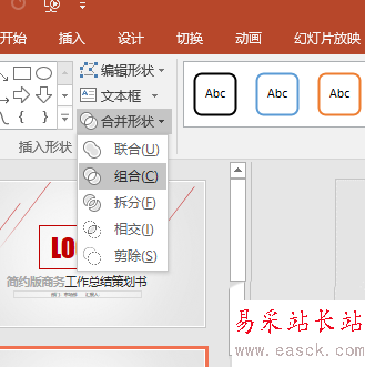 4、按“Ctrl+左鍵”,同時(shí)選中兩個(gè)箭頭,單擊“格式-插入形狀-合并形狀-組合”;