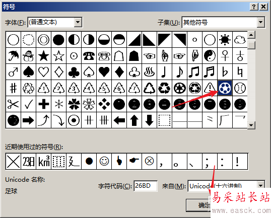 7、在打開的窗口中選擇一種特殊的符號,點擊【確定】。