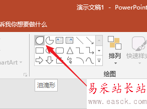 3、在【開始】—【繪圖】中點(diǎn)擊【淚滴形】。
