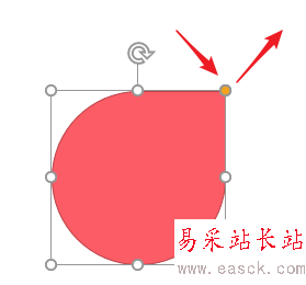 5、點(diǎn)擊形狀尖端的黃色控制點(diǎn),往右上方拖動。
