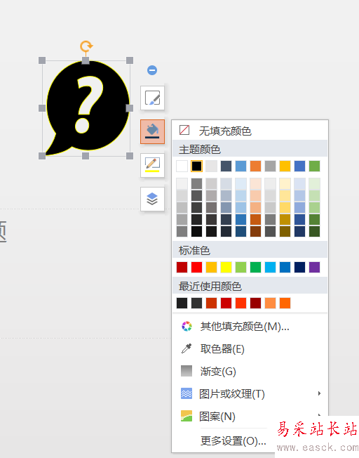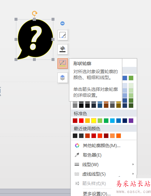5、選中圖形右擊選擇設(shè)置圖形線條的顏色,這樣問號標(biāo)志我們制作完成了。