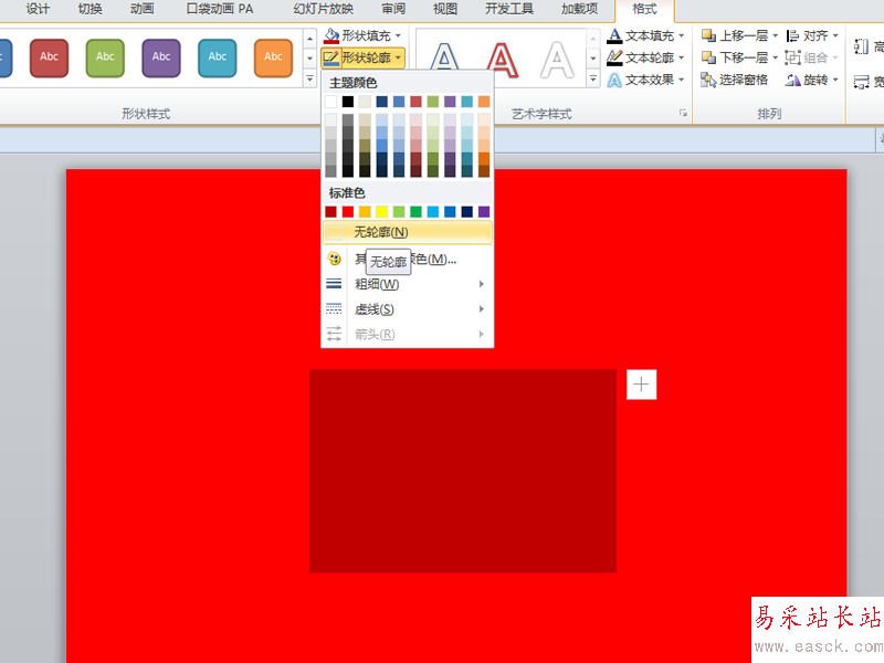 4、執行插入-形狀命令,插入一個形狀,設置形狀填充為另外一種紅色,形狀輪廓為無輪廓,輸入“獎”字。