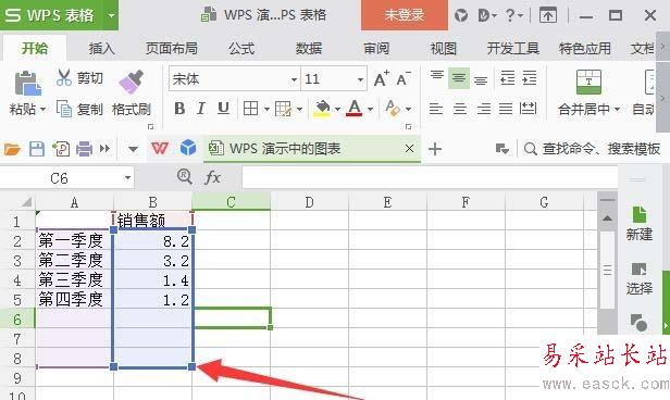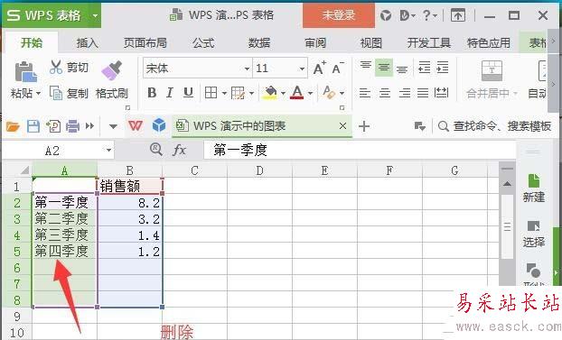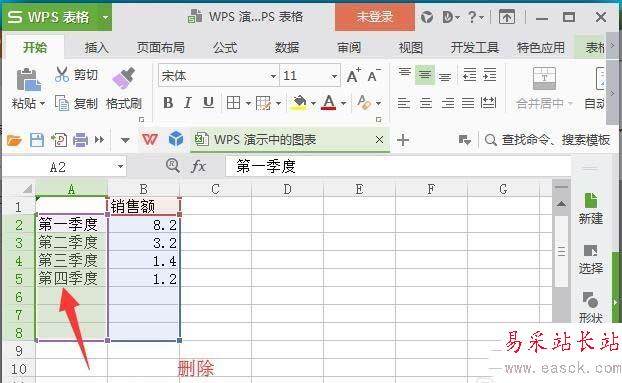 9、刪除銷售額文字文本框,在表格中刪除會自動生成列1,所以返回到ppt中刪除即可。