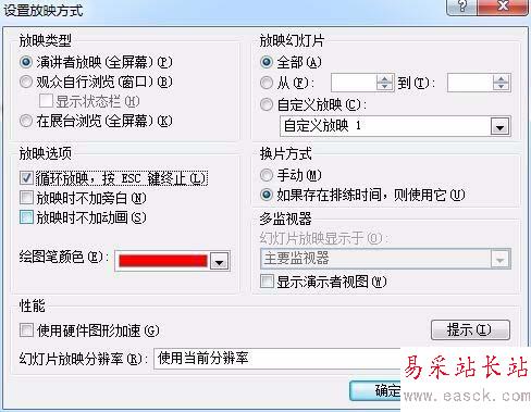 5、之后進(jìn)入我們的放映設(shè)置,在設(shè)置里面點(diǎn)擊循環(huán)放映。確定。