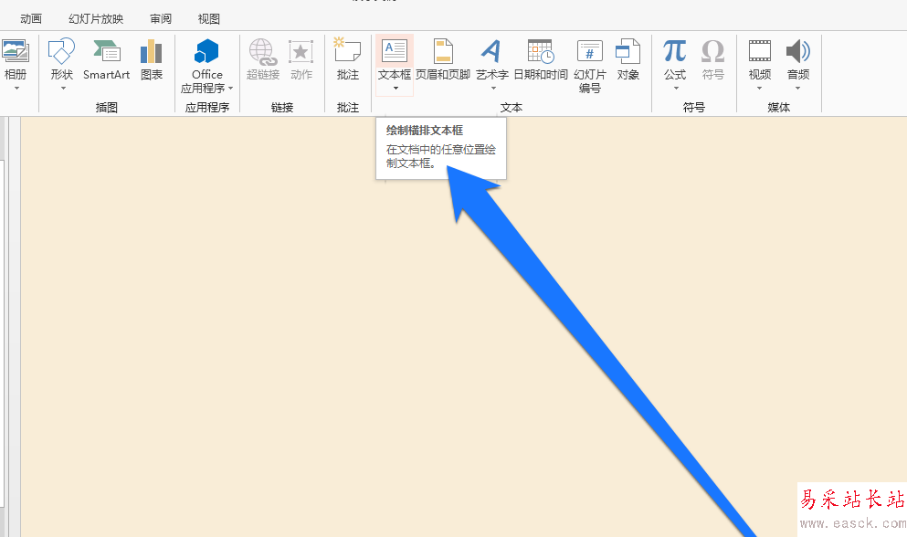 1、首先我們再PPT顯示文稿,插入一個橫排的文本框。