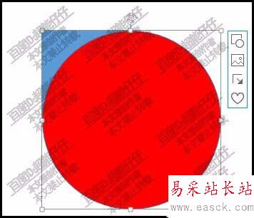 4、按下CTRL+SHIFT鍵,拉動鼠標(biāo)。這時,就會以這個節(jié)點(diǎn)為中心點(diǎn),畫出一個正圓形。一邊拉,一邊看,當(dāng)正圓形邊上到達(dá)矩形左下角與右上角這兩個節(jié)點(diǎn)時,再放開鼠標(biāo)。為了好區(qū)別,把正圓形填充為紅色。