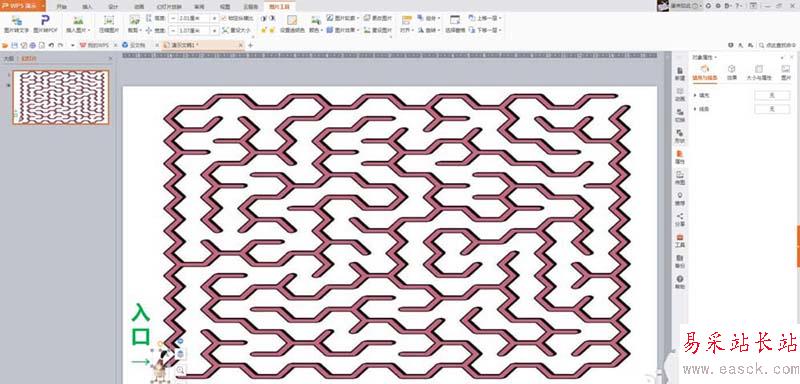 3、添加藝術(shù)字說(shuō)明——迷宮“入口”和”出口“,放在相應(yīng)位置。
