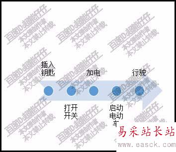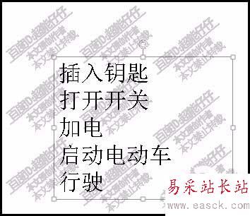 2、在文本框內輸入多行文字。比如,插入鑰匙;打開開關;加電;啟動電動車;行駛