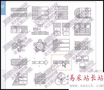 4、在菜單中點擊:smartart,右側即彈出各種流程圖形