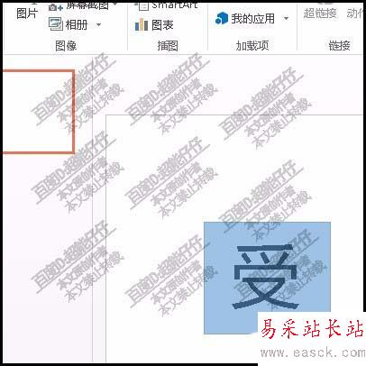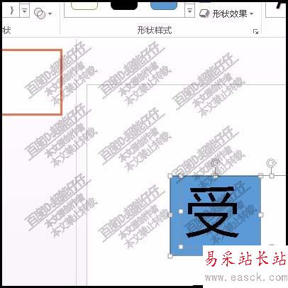 3、再插入一個矩形形狀,把矩形移到受字這上面;完全覆蓋住受字。