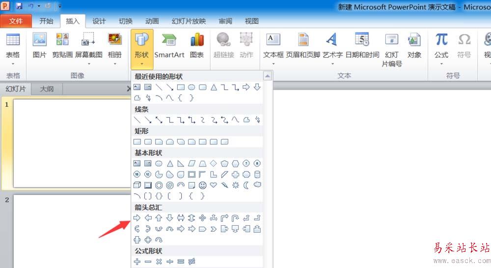 PPT怎么插入各種箭頭? ppt插入轉彎箭頭的教程