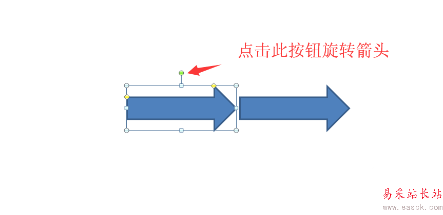 5、當第二個箭頭繪制好后,我們就需要更改箭頭方向了。找到圖中箭頭所示的符號,點擊后按住滑動鼠標,讓箭頭翻轉180度