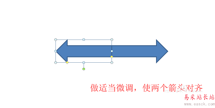 6、微調讓兩個箭頭兩端對齊。設置好后,我們還可以為箭頭設置統一的顏色。