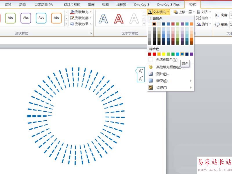 3、選擇文本框,執行格式-文本效果命令,接著選擇轉換里面的圓形。