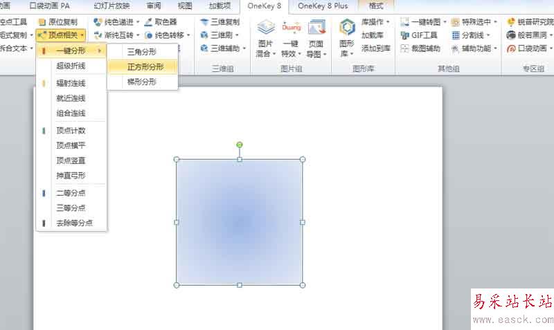 3、執行onekey8菜單,從工具欄中選擇定點相關,接著選擇一鍵分形中的正方形分形命令。