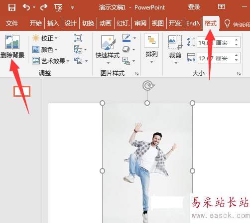 3、選中圖片,點擊格式——刪除背景,進行摳圖