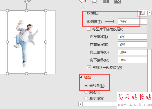 6、然后設置透明度到你需要的程度,比如75%,將線條設置為無線條,然后移動至合適的位置,就完成啦!