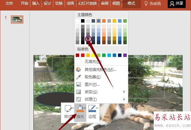 7、同理我們插入“橢圓”。右擊橢圓,單擊填充,選擇所示的顏色。