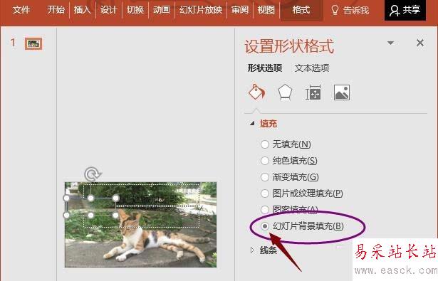 2、接著我們設置背景格式,以圖中為例,點擊。