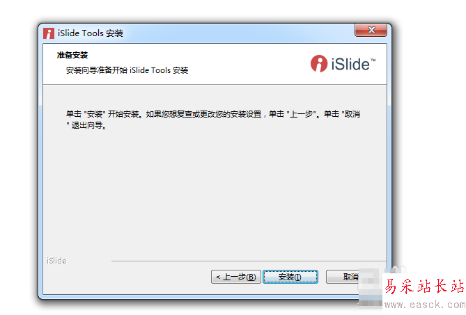 6、然后選擇安裝路徑,點擊下一步,進入下一安裝界面,然后點擊安裝。就進入了islide的安裝。
