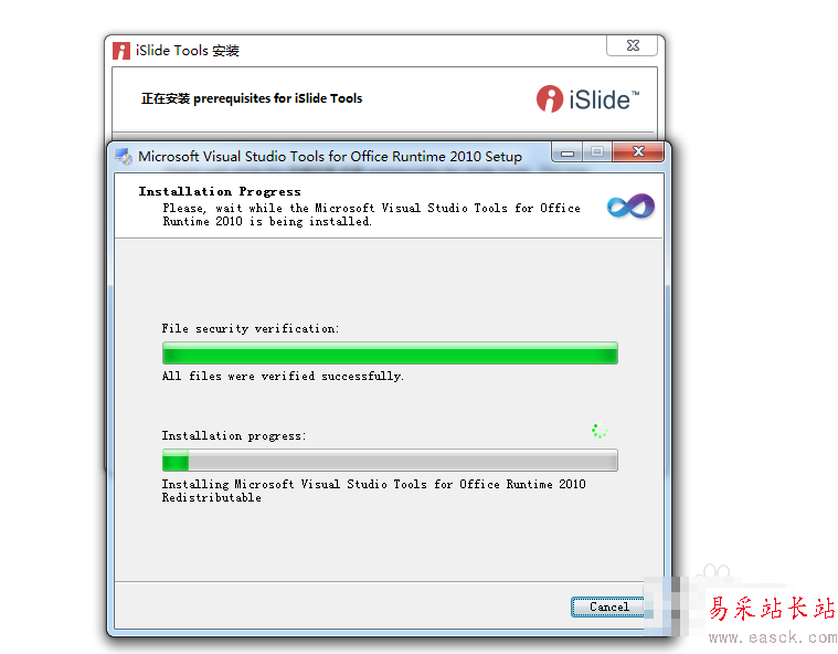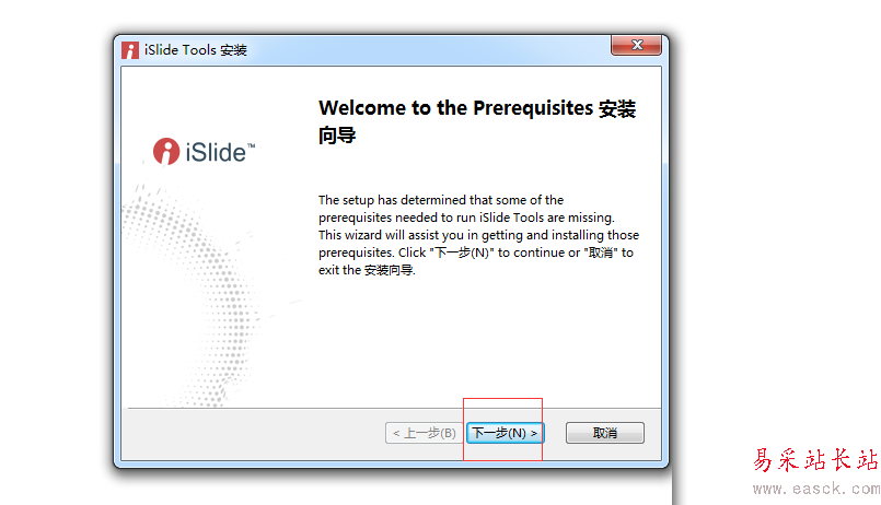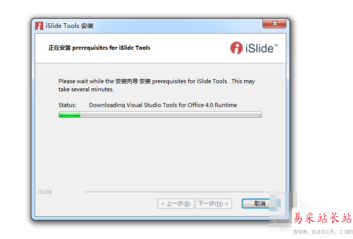 4、islide需要visual Studio tools for office4.0 runtime 和.netframework 4.5支持,點擊下一步即可,會自動下載這兩個工具。