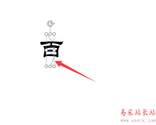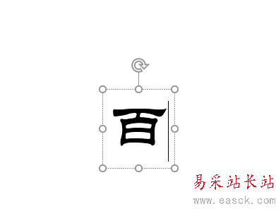 8、鼠標點擊組合好的【百】字左半邊,控制出現(xiàn)的旋轉按鈕進行文字旋轉,最后稍微調整一下就可以了