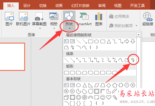 3、鼠標點擊【插入】-【形狀】-【線條】-【自由曲線】