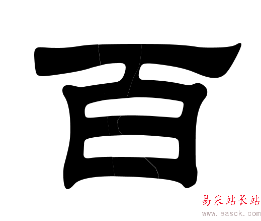 6、把拆分好的【百】字放大,把【百】字多余的部分刪掉